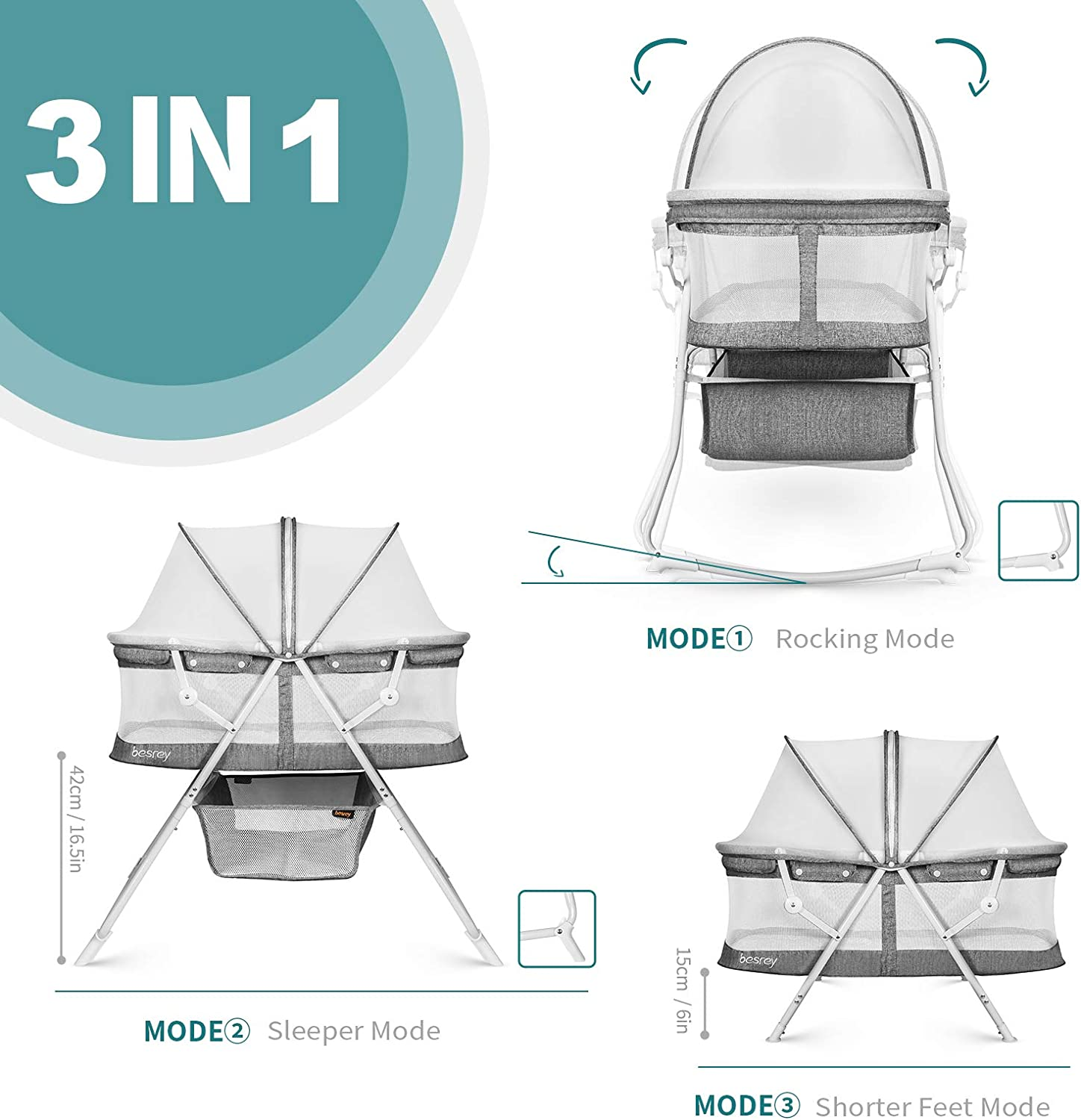 • ?MULTI-MODE (3 EN 1): rapidement convertible en differents modes berceau grace aux leviers latéraux; 3 modes berceau possibles en fonction de vos préférences: mode berceau à pieds longs, mode berceau à pieds courts et mode berceau à bascule; convient aux nourrissons de 0 à 5 mois environ.