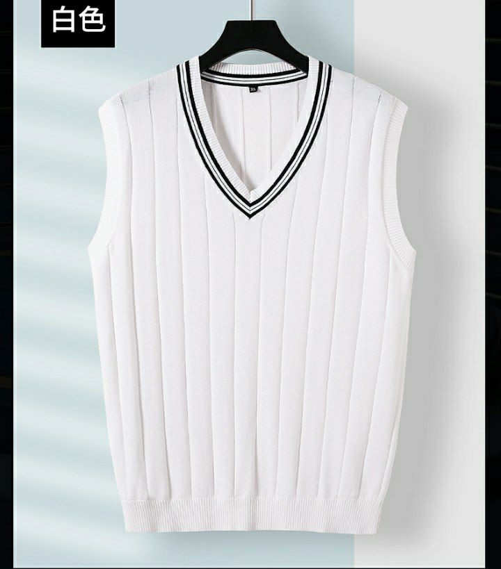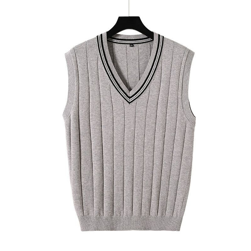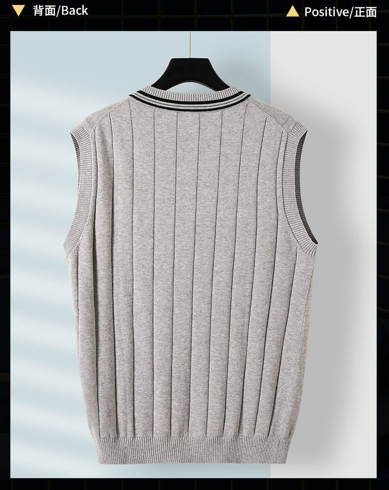 pull  gilet hommes mince coton sans manches col en v couleur unie pull