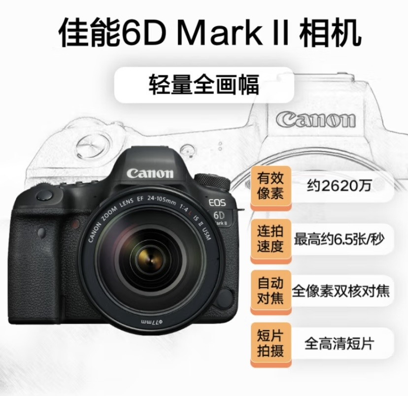 Appareil photo reflex plein format Canon EOS 6D Mark II 6D2, ensemble d'objectifs standard de classe L 24-105 tout neuf dans son emballage d'origine