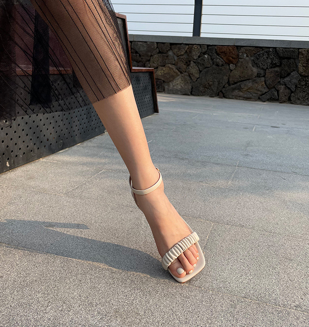 Sandales haut de gamme à talons hauts pour femmes avec ceinture - chaussures pour femmes petit talon épais bout carré - chaussures à la mode