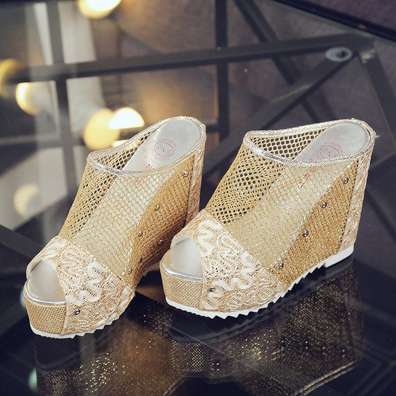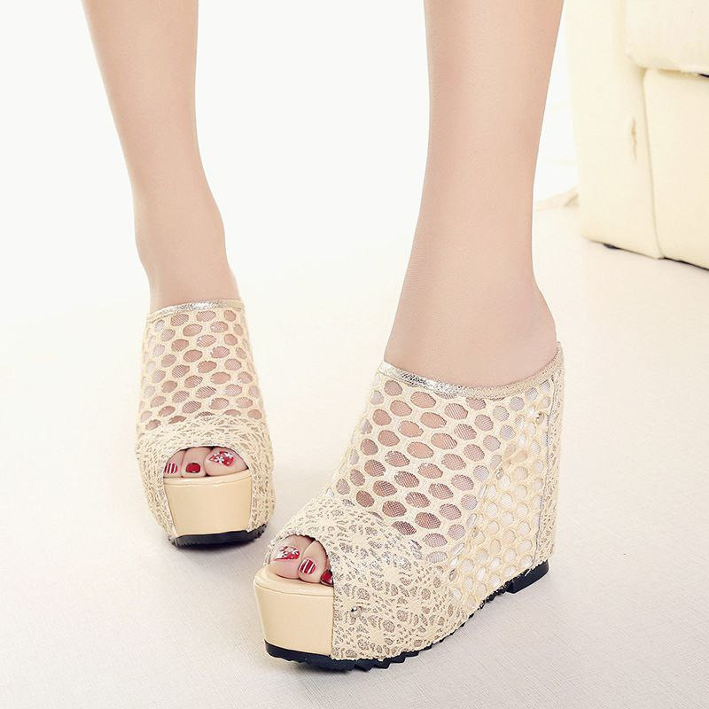 sandales à talon hauts de 12cm pour femme chaussures d'été à plateforforme pantoufles à dentelle chaussures à bout ouvret nouvelle collection 2022